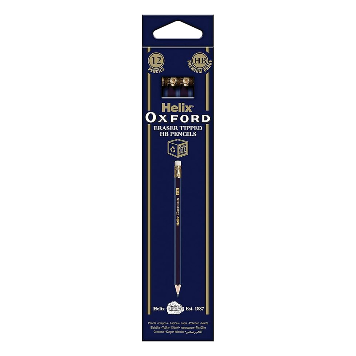 HELIX OXFORD ERASER TIPPED HB PENCILS X12